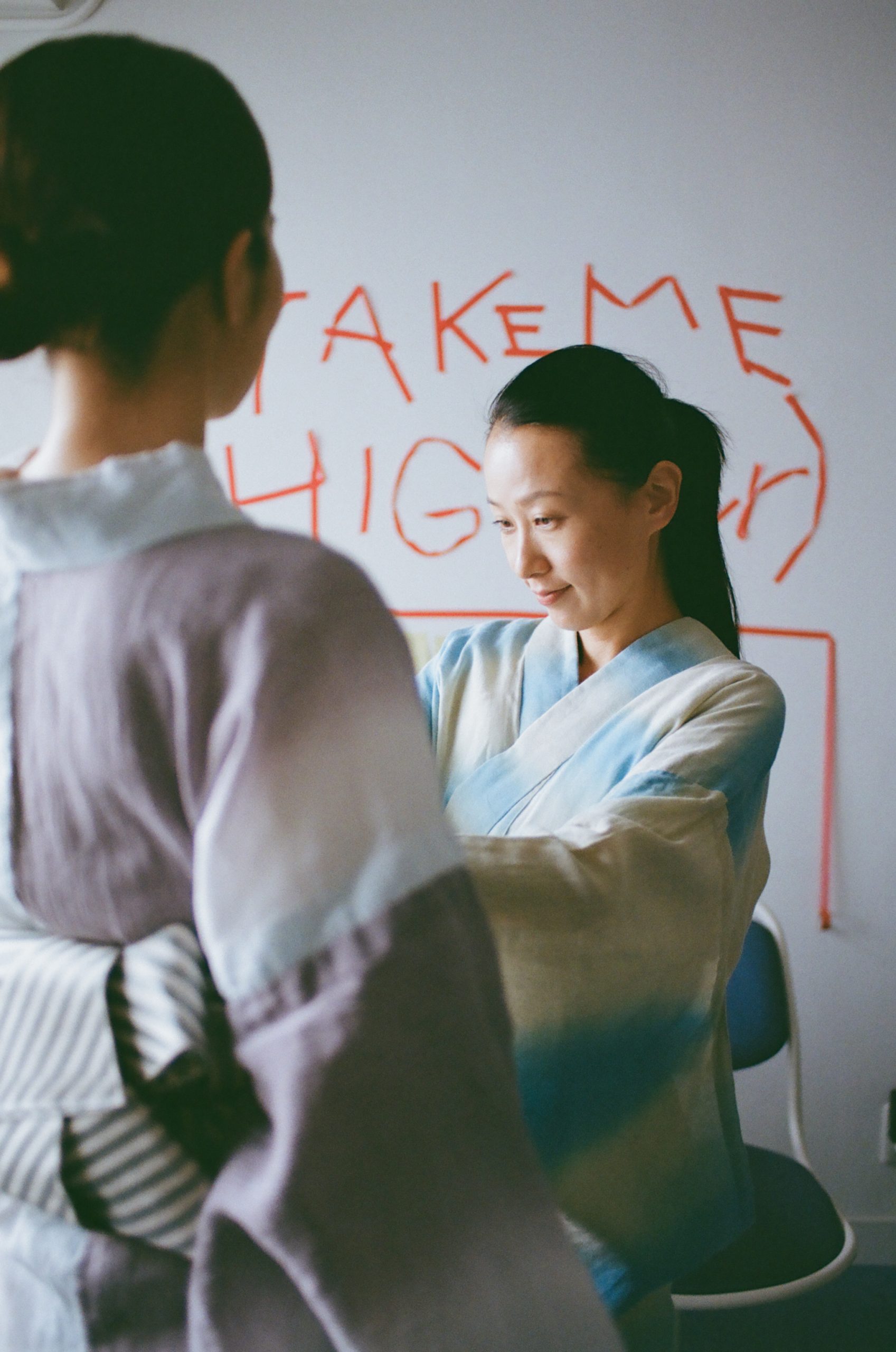 伊藤_私自身京都最古の禅寺に生まれたんですけど、その禅寺で大事な修行の一つとされているのが坐禅なんです。坐禅で特に大事とされているのが、「調身・調息・調心」という考え。これは、まず身体を整えることで、呼吸が整っていき、最後は心が整うという意味なんですけど、この坐禅の考えと着物を着ることはすごく通ずるものがあるなと思っています。着物を纏い身体の形を整えていくと、呼吸も静かになり整っていく。そして最後に心が整うということをすごく意識しているんです。着物はマインドフルネスの要素があると思っているので、呼吸を物凄く大事にしているんです。