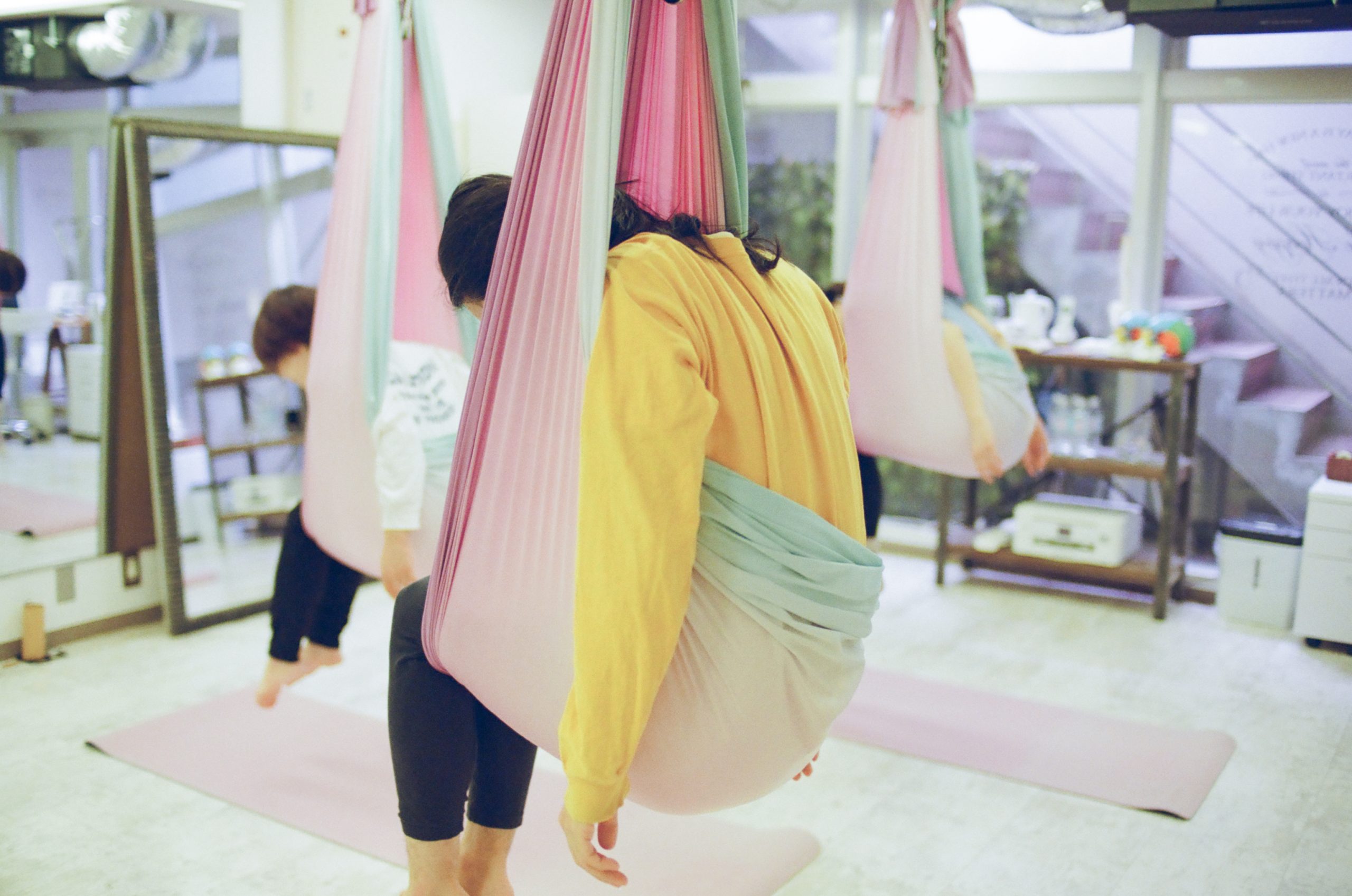 haru._エアリアルヨガはフライングヨガとも呼ばれているんですよね。私は普通のヨガに昔通っていたんですけど、コロナの時期に辞めちゃって。その頃からフライングヨガは知っていて、ずっとやりたかったんです!一時期すごく流行ってたんですよね。