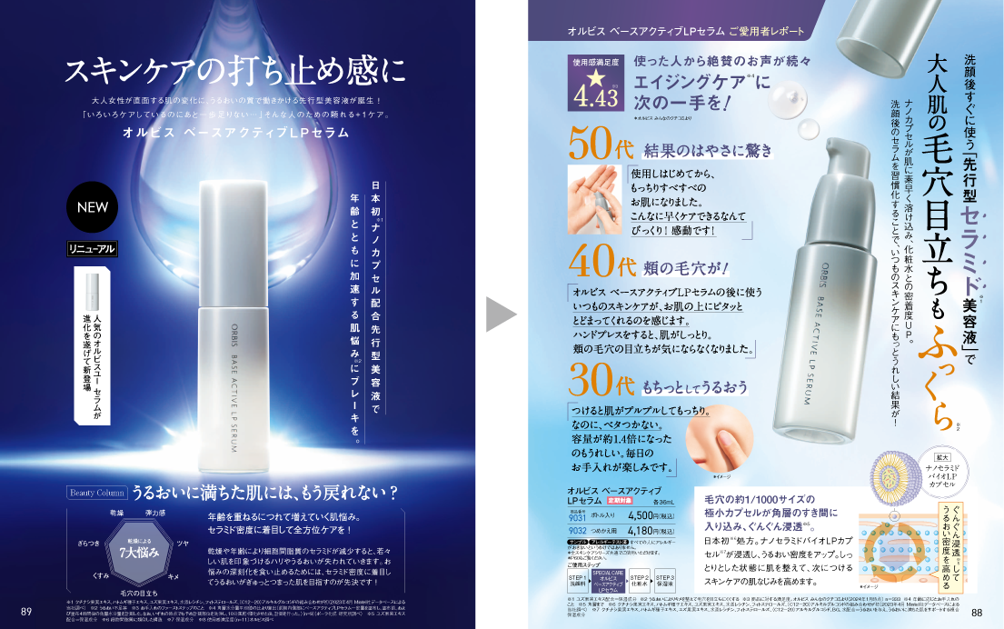 そこで、より自信を持っておすすめできる商品を増やすため、3つの柱となる商品をつくり、育成する「3大美容液戦略」を提案しました。結果的に『リンクルブライトセラム』に加えて、先行型美容液の『ベースアクティブLPセラム(2023年発売)』、美白美容液の『アドバンスド ブライトニング セラム(2024年発売)』が主力商品に成長しました。
