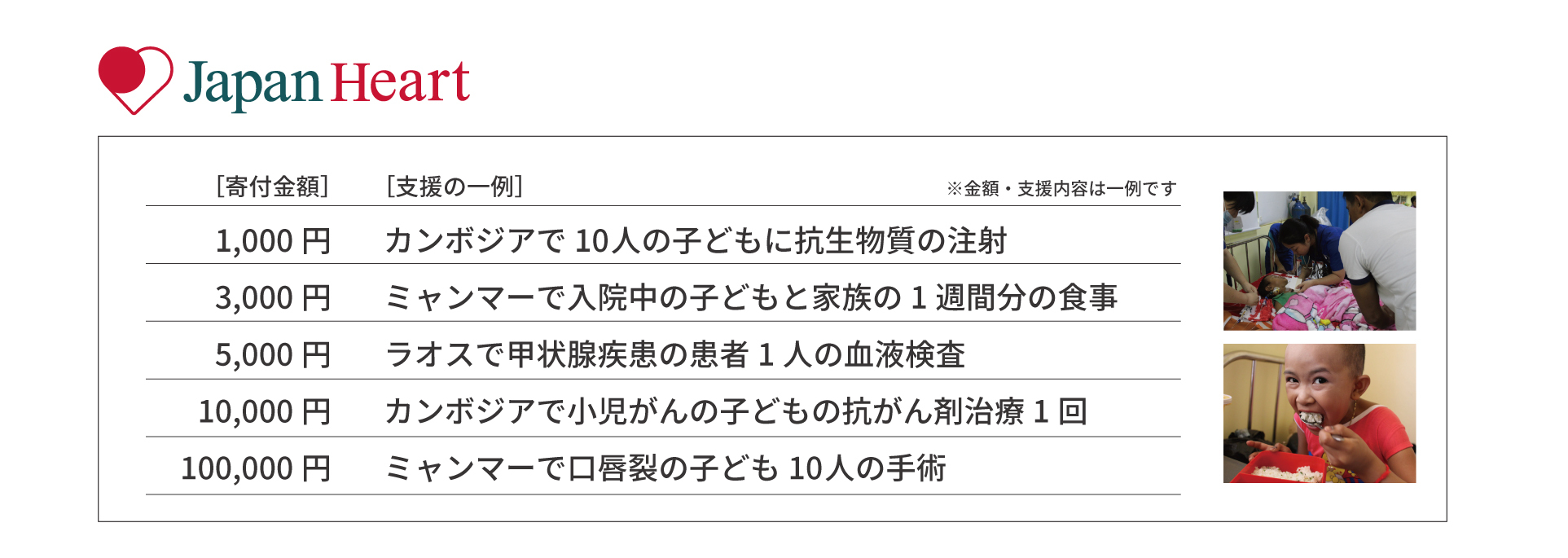 ジャパンハートは、「医療の届かないところに医療を届ける」を理念に国内外で活動する日本発祥の国際医療NGO。東南アジアを中心とした地域で、小児がん手術などの高度医療を含む治療を年間約4万件無償で行っています。