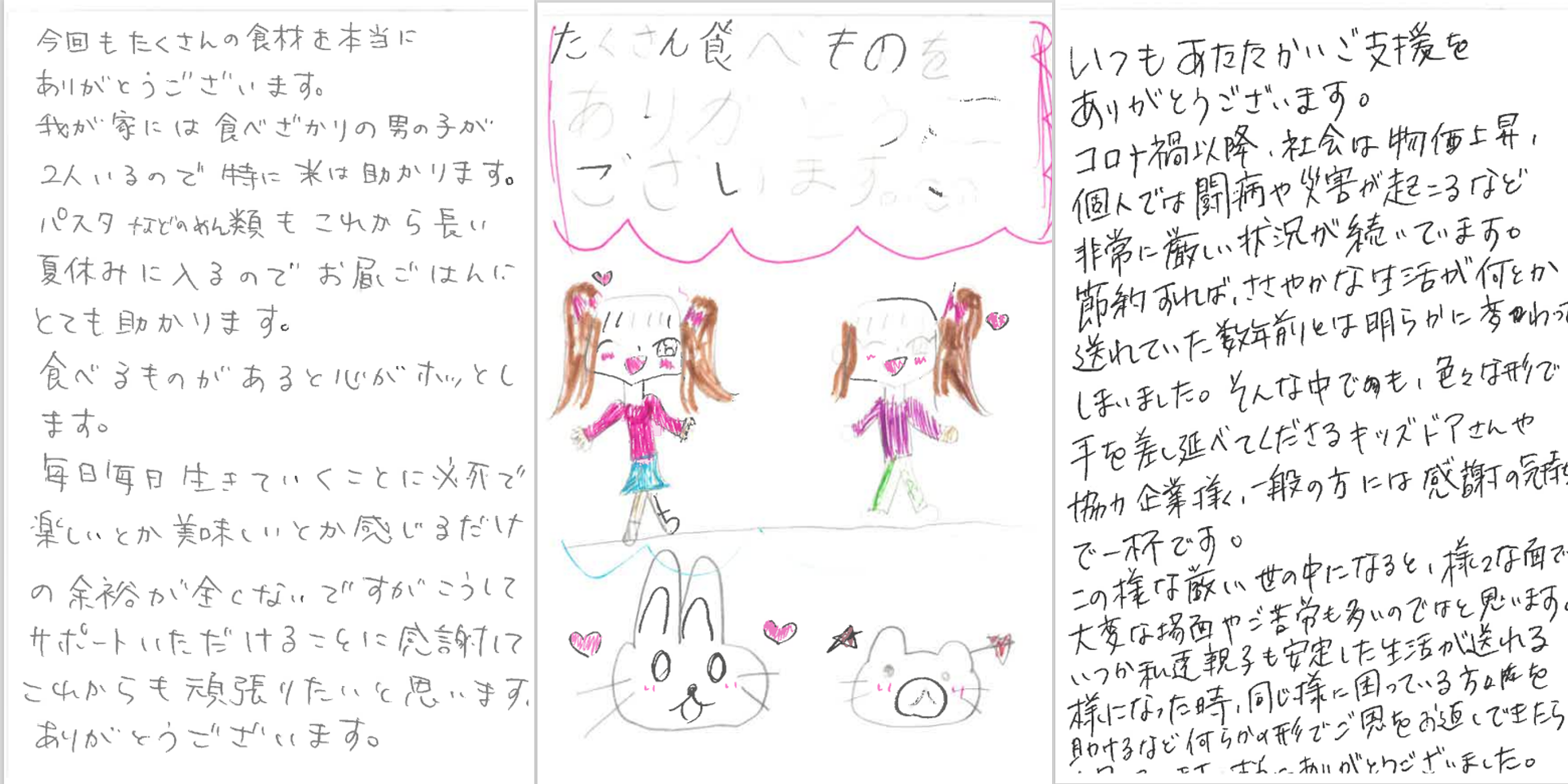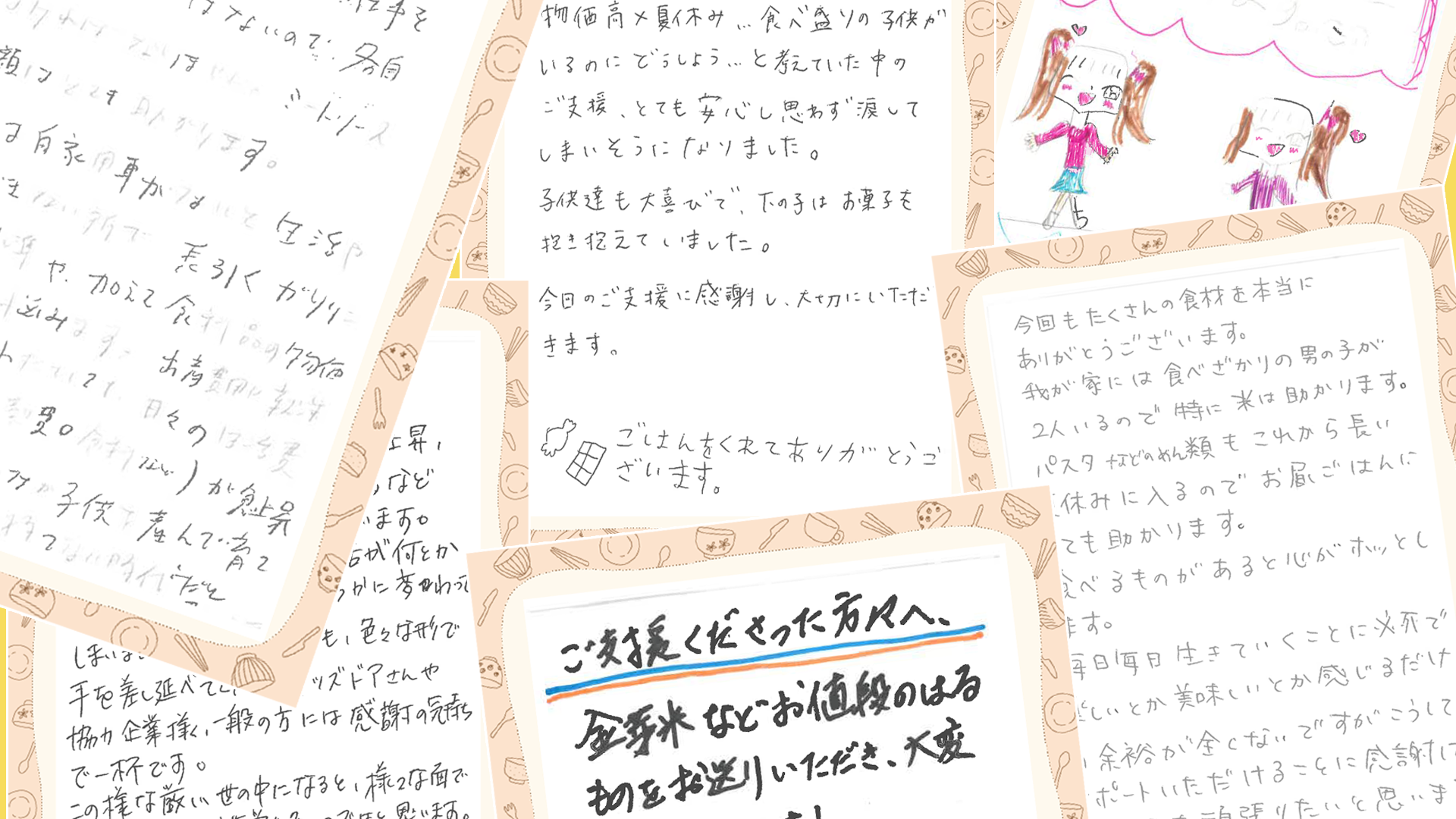 「食料が届いてほっとしました、という声を本当にたくさんいただきました。中には、『子どもの笑顔を見て、私も嬉しさが二倍になりました』という内容のものや、『一人で子育てすると決意したけれど、一人ではないんだと感じられました』という声もありました。食料品は“モノ”かもしれませんが、それ以上の何かを届けているのだと実感しています。誰かが自分たちのことを気にかけてくれているというあたたかさや安心感も、一緒に届いているのだと思います。」