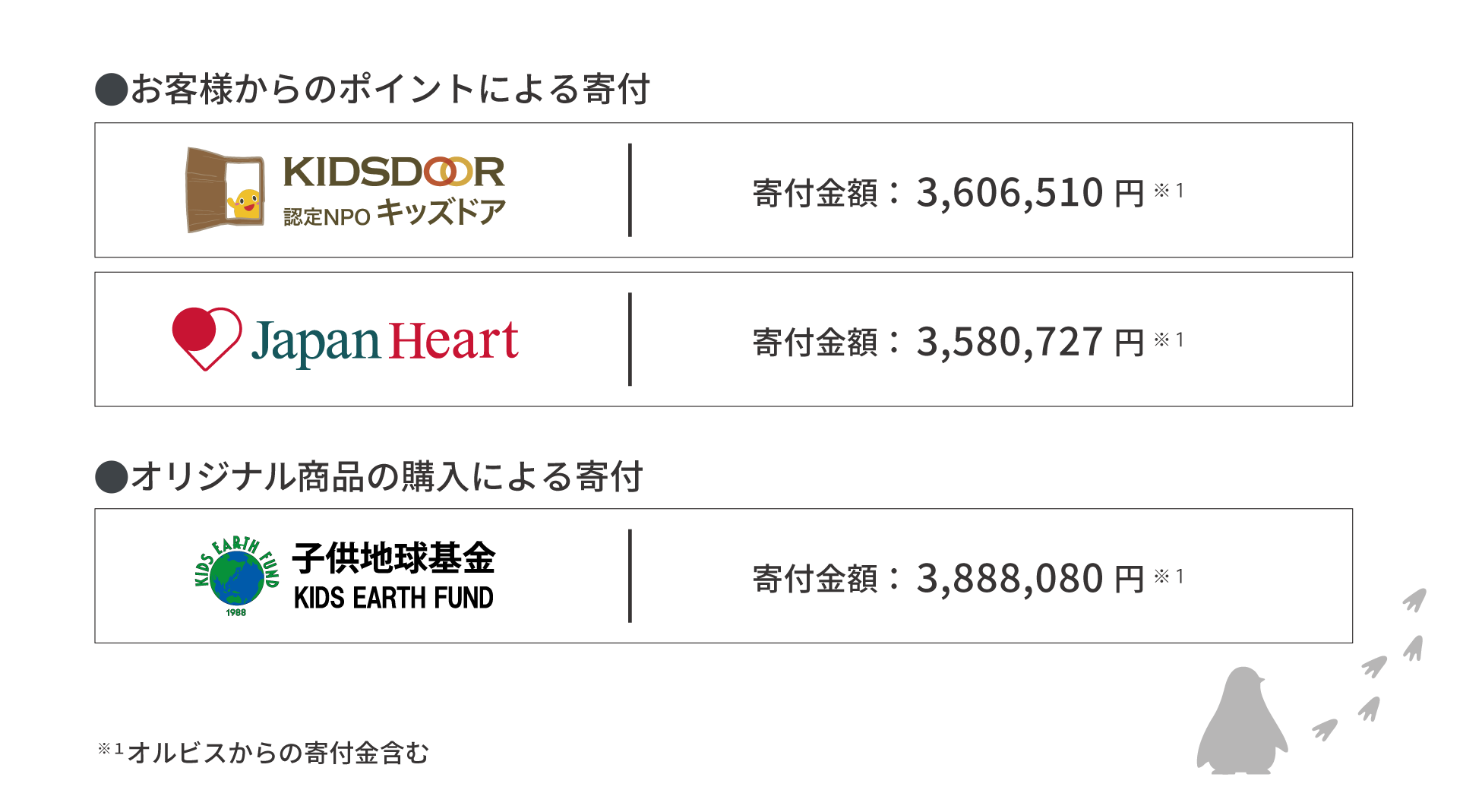 2025年度は、延べ126,582件のご支援をお寄せいただきました。お客様からお預かりした寄付金にオルビスからの寄付金を合わせて、合計11,075,317円を3つのパートナー団体にお届けいたします。