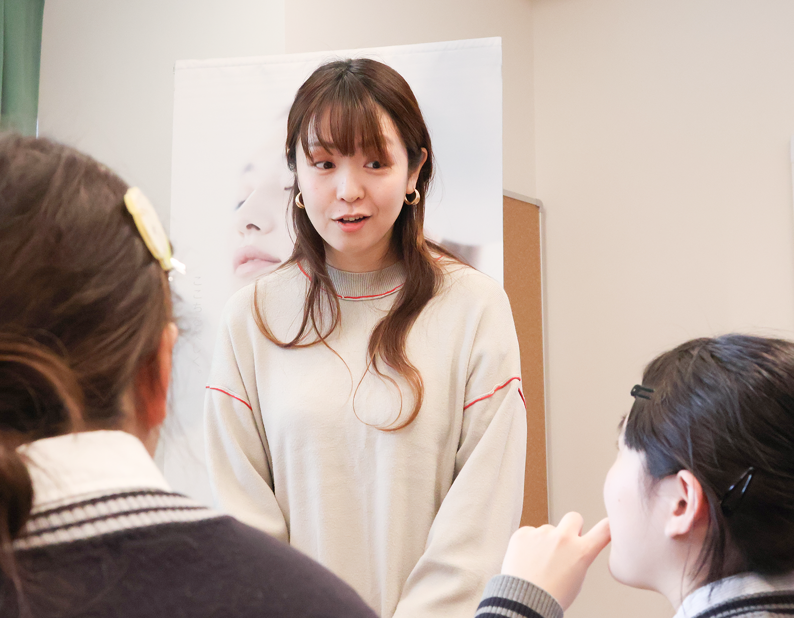 2026年2月、都内のある高校で実施した「ミライ肌アトリエ」のスキンケアレッスンに、長鴫さんが参加しました。